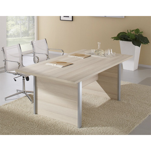 Стол переговоров ФЛЭШ: современный дизайн с металлическими опорами и вставками ЛДСП.